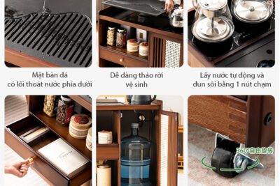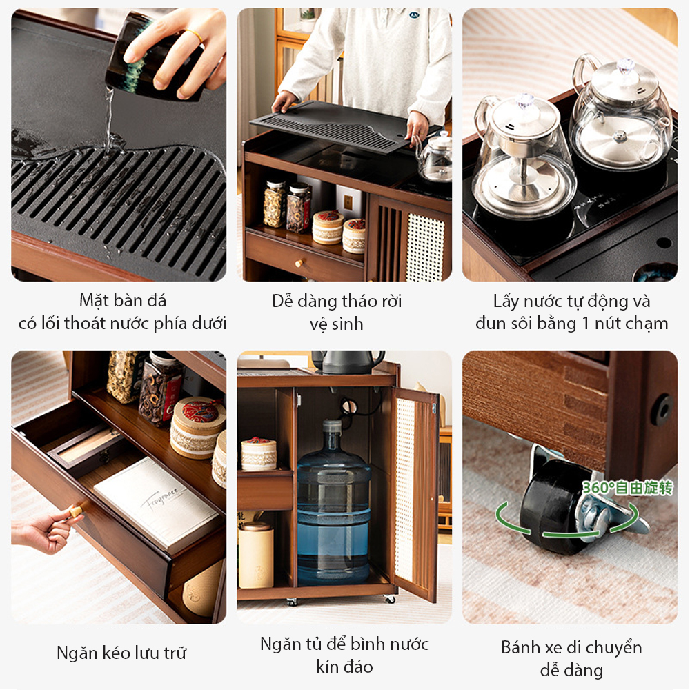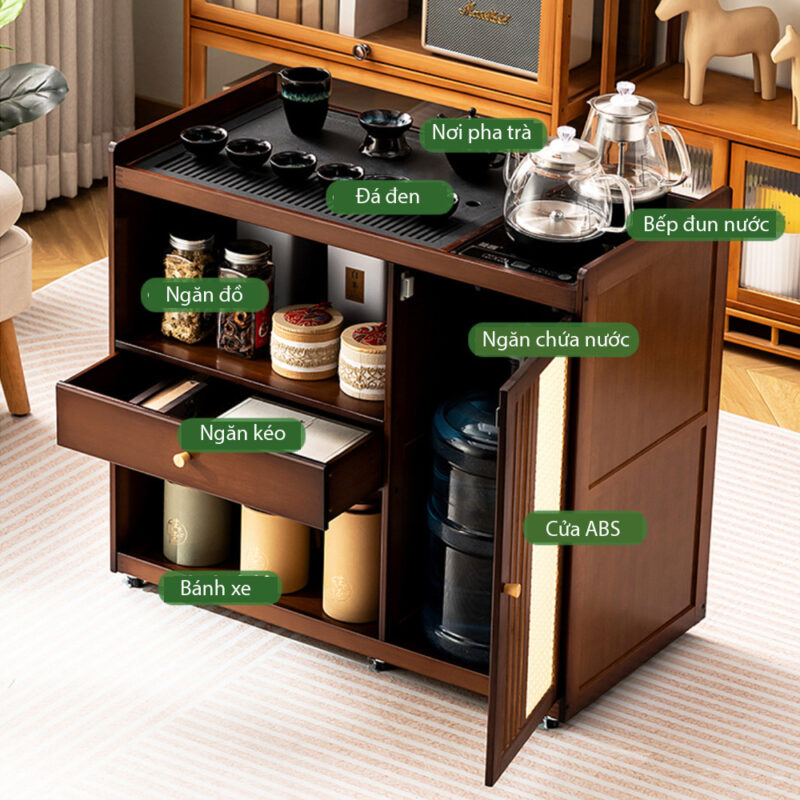 BÀN TRÀ DI ĐỘNG ĐA NĂNG GỖ TRE LƯU TRỮ TIỆN LỢI
