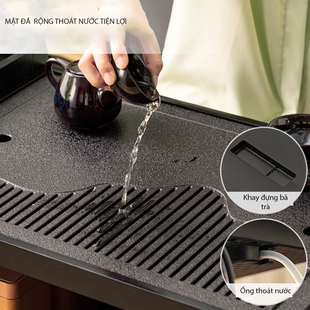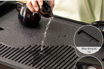 Mặt bàn được tích hợp khay trà chống tràn, dễ vệ sinh.