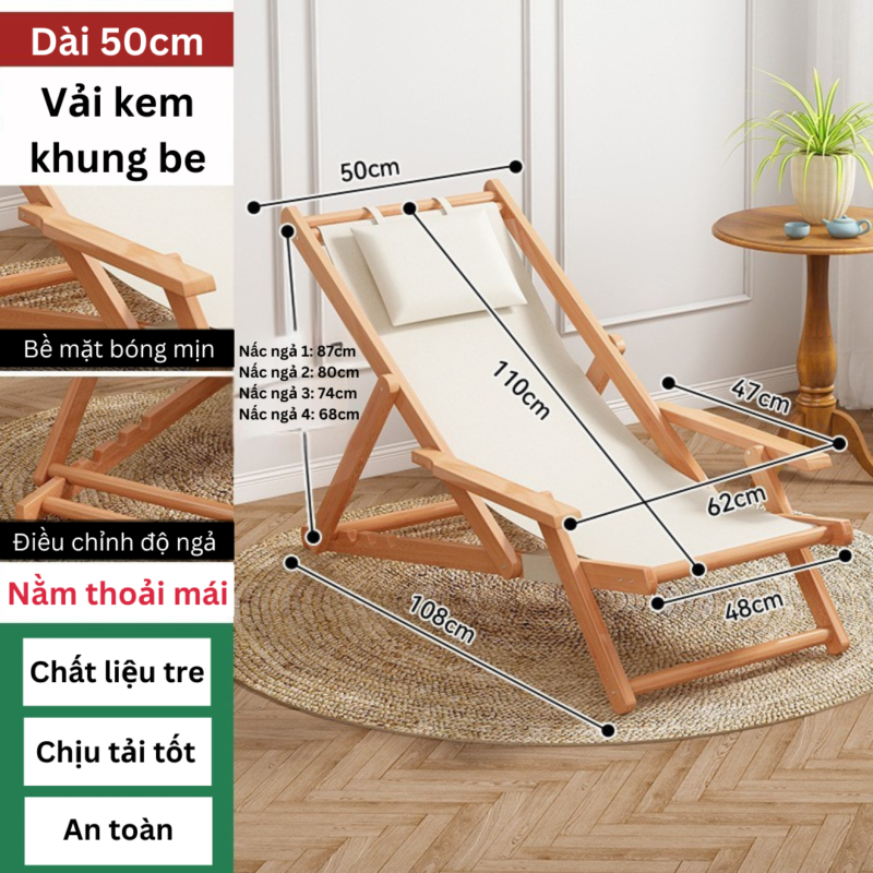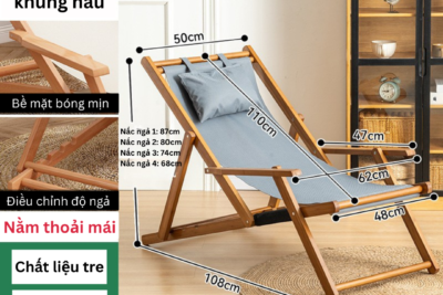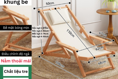Ghế thư giãn khả năng ngả 4 nấc với kích thước lần lượt là: