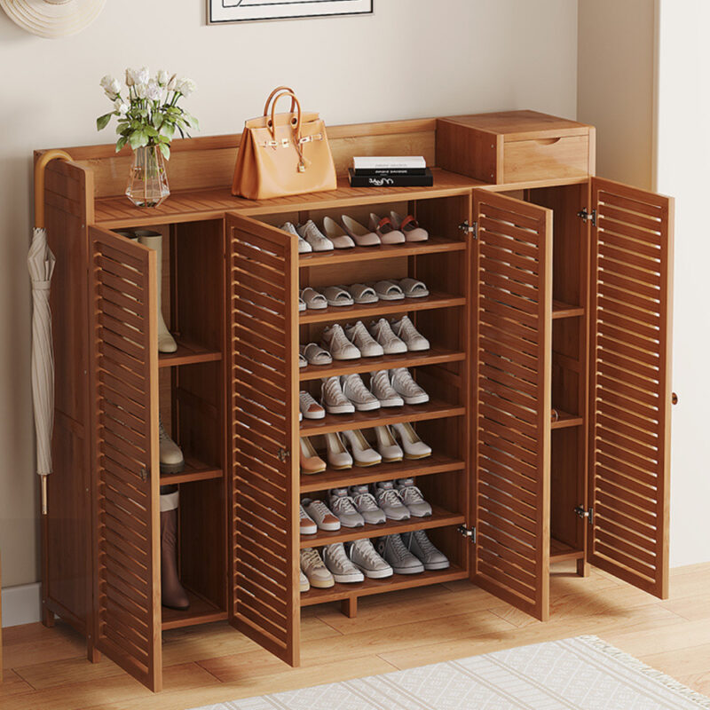 Phiên bản có cánh tủ nan: Tạo cảm giác kín đáo, gọn gàng hơn, đặc biệt thích hợp để “cất đi” những món đồ chưa dùng tới hoặc cần giữ sạch sẽ, đồng thời giữ được độ thông thoáng nhờ thiết kế nan dọc thanh lịch.