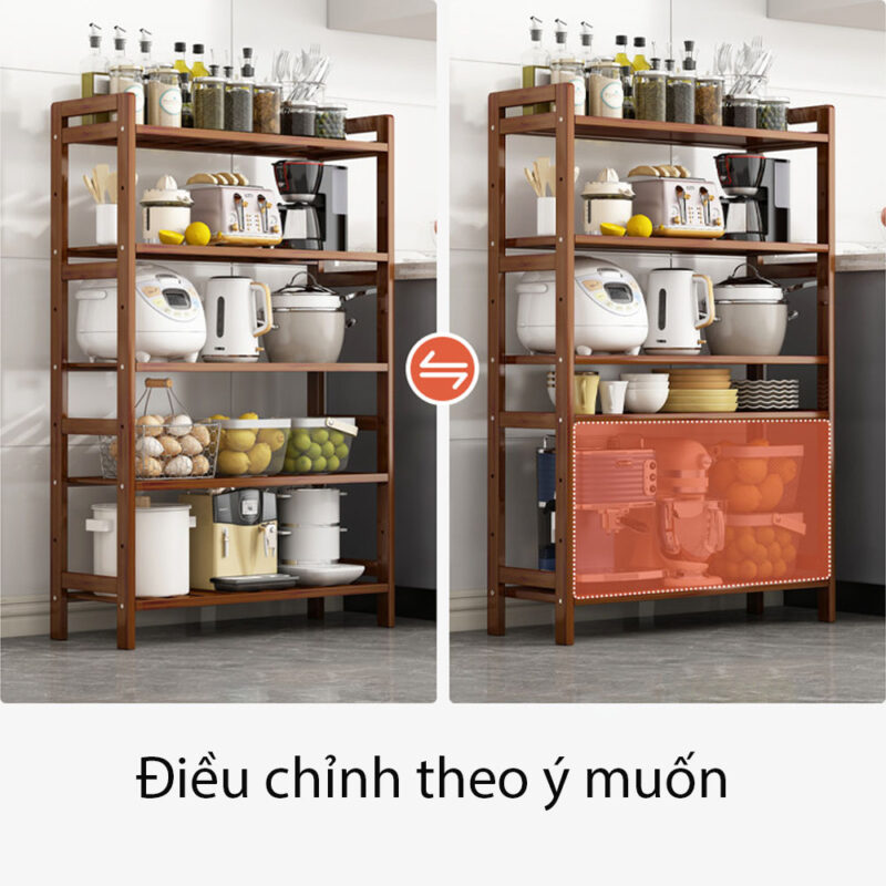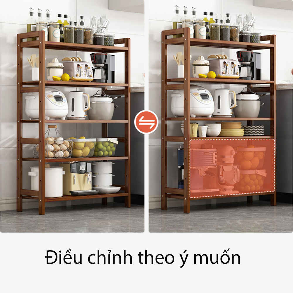- Tùy chỉnh linh hoạt: Thiết kế lỗ định sẵn thông minh cho phép bạn dễ dàng điều chỉnh khoảng cách giữa các tầng kệ, tùy theo kích thước đồ vật. Muốn để nồi niêu xoong chảo hay sách vở, đồ chơi cho bé đều thoải mái.