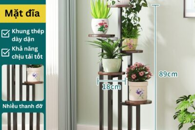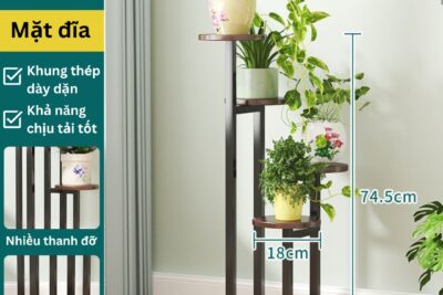 Cấu trúc siêu bền bỉ, thách thức thời gian: Khung kệ được chế tạo từ thép cao cấp, sơn tĩnh điện chống gỉ sét, mang đến sự vững chãi tuyệt đối và khả năng chịu lực ấn tượng. Bạn hoàn toàn yên tâm trưng bày những chậu cây yêu thích mà không lo kệ bị rung lắc, cong vênh hay gãy đổ, đảm bảo vẻ đẹp và độ bền lâu dài.