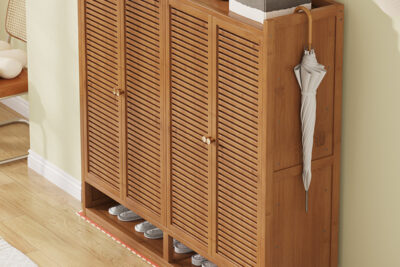 Thiết kế đơn giản nhưng tinh tế, phù hợp với cả không gian hiện đại lẫn cổ điển. Dù đặt ở lối ra vào hay hành lang thì mẫu Tủ giày cánh nan gỗ tre này đều tạo thêm điểm nhấn thanh lịch cho không gian sống.