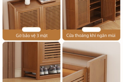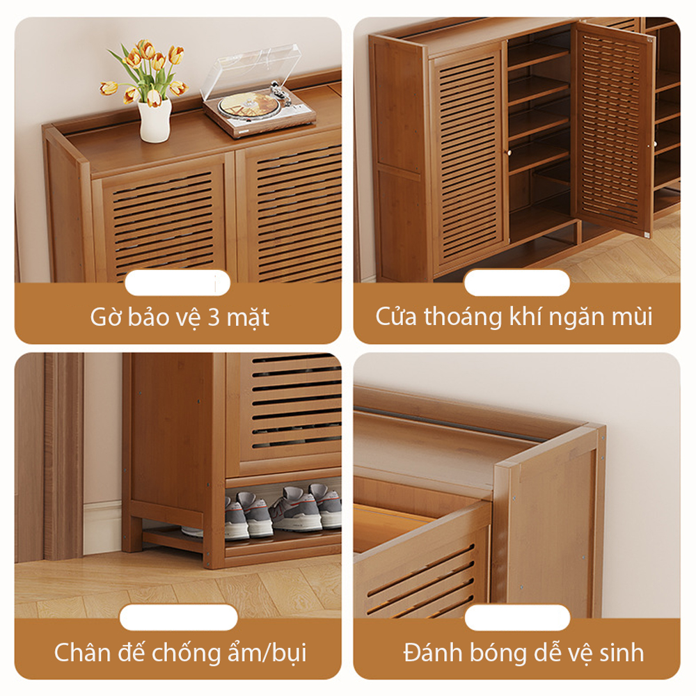 2. Ưu điểm của Tủ giày cánh nan gỗ tre 4 cửa