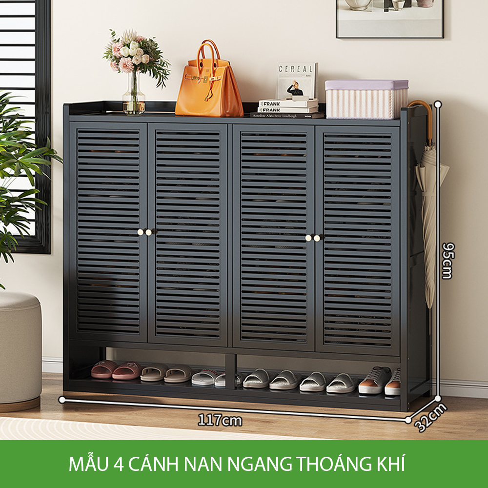 Tủ giày cánh nan gỗ tre 4 cửa được thiết kế với diện tích chứa lớn, lý tưởng cho gia đình đông người hoặc những ai có bộ sưu tập giày dép đa dạng. Sản phẩm có 2 kích thước: