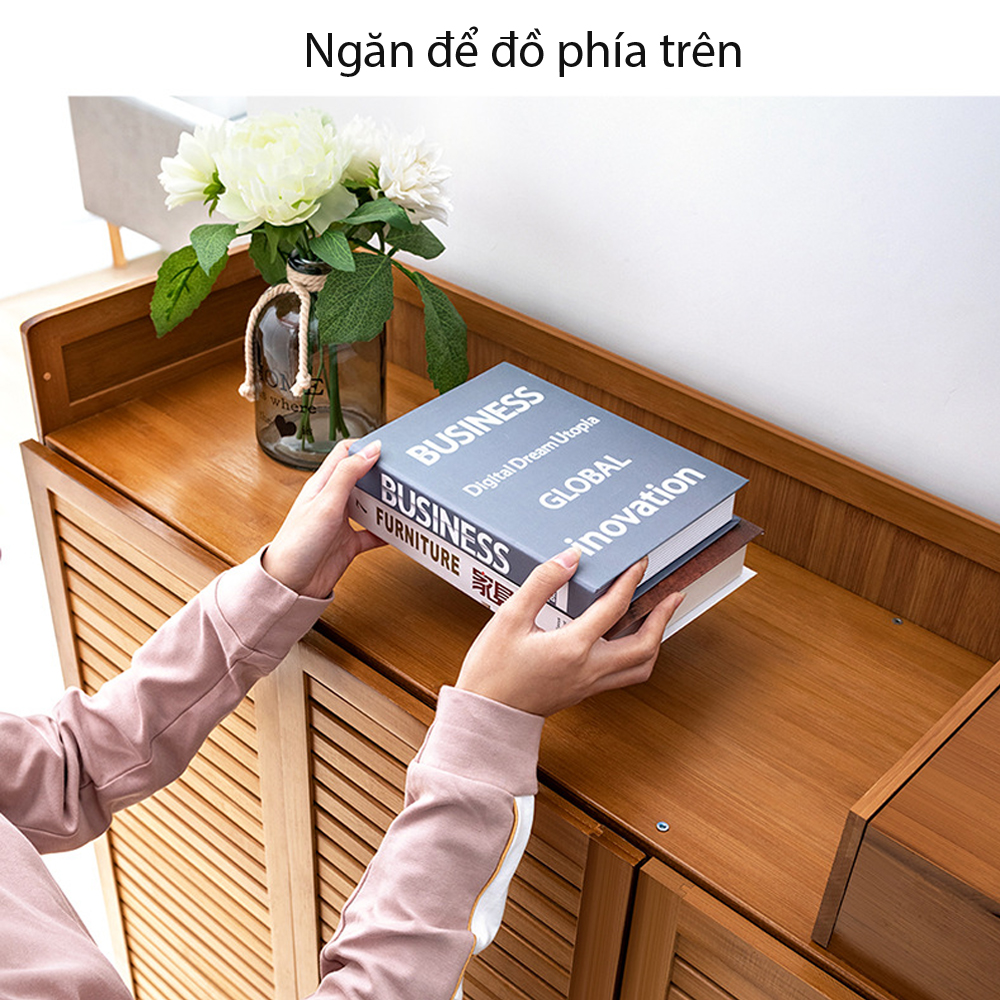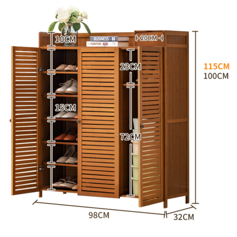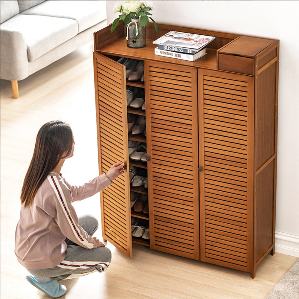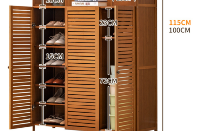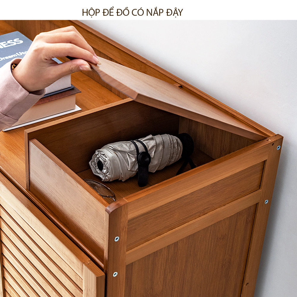 TỦ GIÀY GỖ TRE 3 CỬA CÓ HỘP ĐỰNG – LƯU TRỮ GIÀY DÉP GỌN GÀNG
