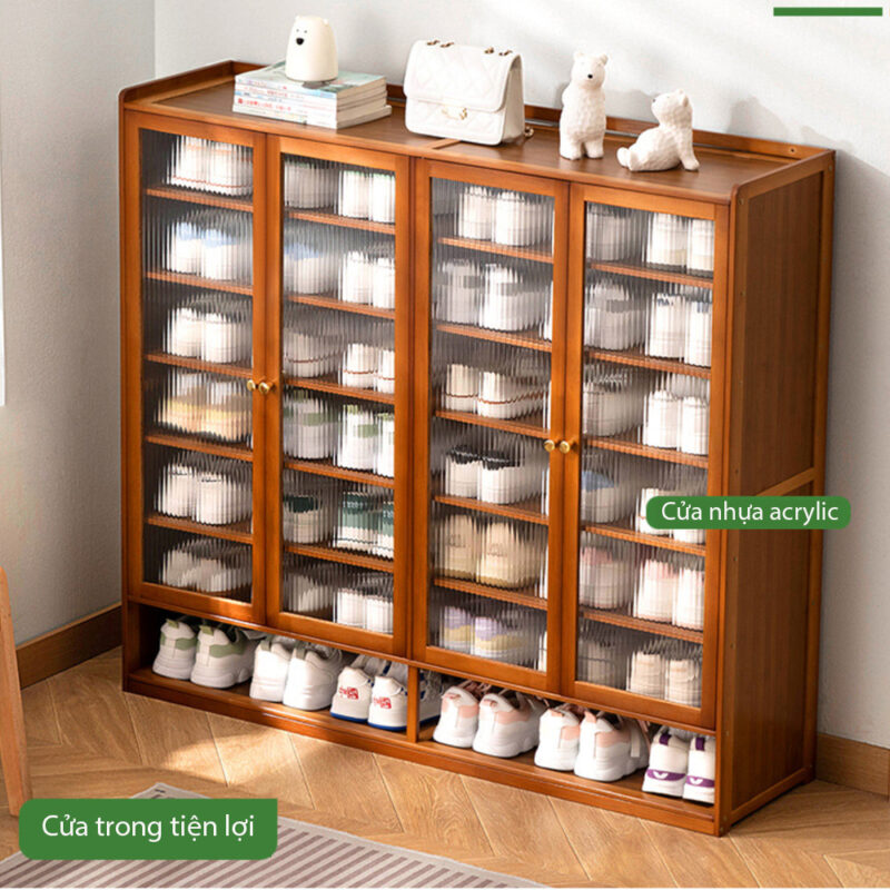 Tủ giày gỗ tre 7 tầng với thiết kế cửa trong cao cấp là sự lựa chọn lý tưởng cho gia đình yêu thích sự gọn gàng, tinh tế và tiện nghi trong không gian sống.