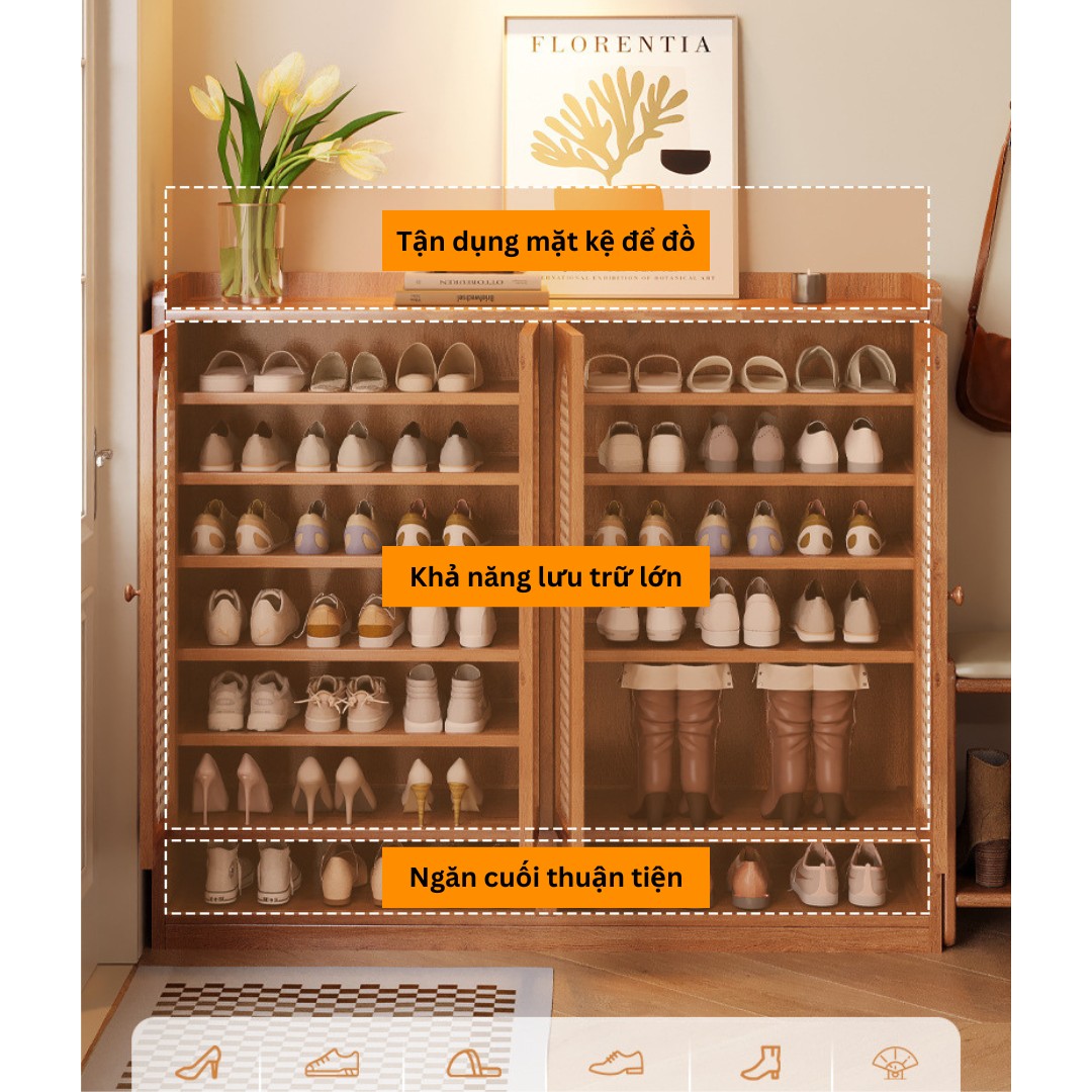 🌿 Ngăn hở tiện lợi, thay giày dép nhanh chóng: Các ngăn cuối được thiết kế dạng hở, giúp bạn dễ dàng lấy và cất những đôi giày dép hay đi, tiết kiệm thời gian và công sức.